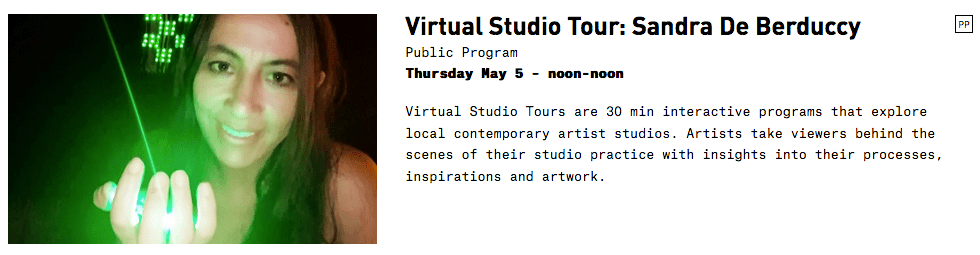 Virtual Studio Tours son programas interactivos de 30 minutos que exploran estudios de artistas contemporáneos locales. Los artistas llevan a los espectadores detrás de escena de su práctica de estudio con información sobre sus procesos, inspiraciones y obras de arte. Moderado por el curador asociado de participación comunitaria de BMoCA, esta serie de Instagram Live es una iniciativa para apoyar a los artistas locales y brindar a los espectadores la oportunidad de observar más de cerca las prácticas artísticas y hacer preguntas a los artistas contemporáneos.