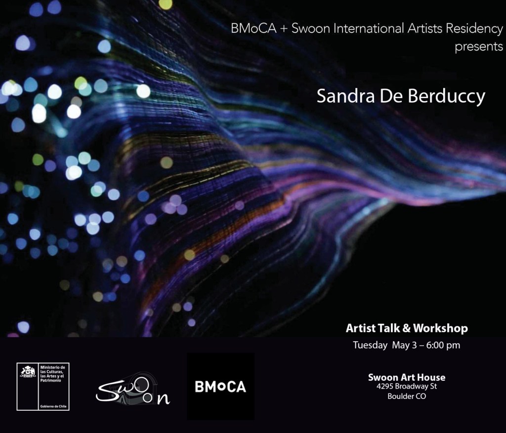 BMoCA + Swoon Artista Internacional en Residencia Sandra De Berduccy es una artista de nuevos medios, tejedora, especialista en técnicas textiles andinas e investigadora de Bolivia. Ha trabajado durante veinte años produciendo obras de arte, exposiciones, textos e investigaciones sobre técnicas y procesos textiles tradicionales del continente americano, especialmente en textiles andinos y precolombinos.