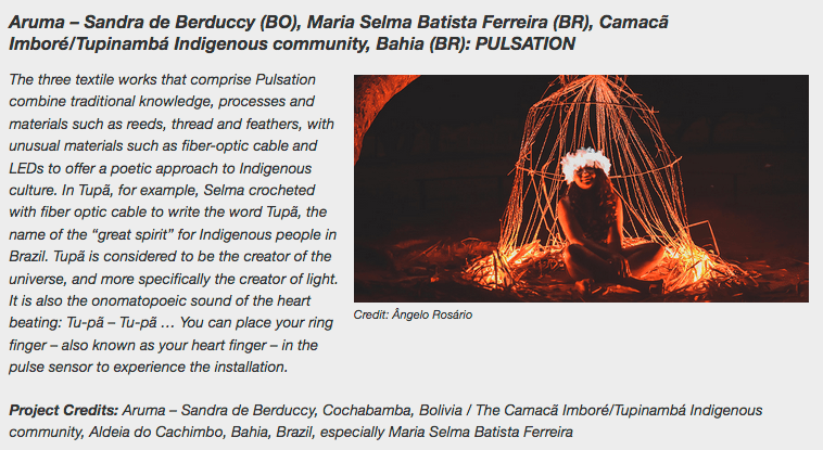 Pulsation, Aruma – Sandra de Berduccy and the Camacã Imboré/Tupinambá community, electronic textile art.