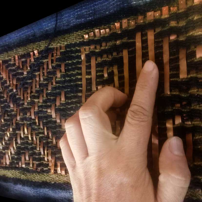 Textiles interactivos tejidos en telar de cintura, son sonorizados de acuerdo a los patrones tejidos y se consideran dispositivos para la experimentación sonora.