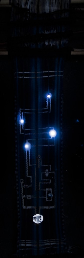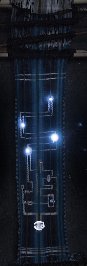 Crux is a work that inserts a light sensitive electrical circuit into the traditional Andean loom.
