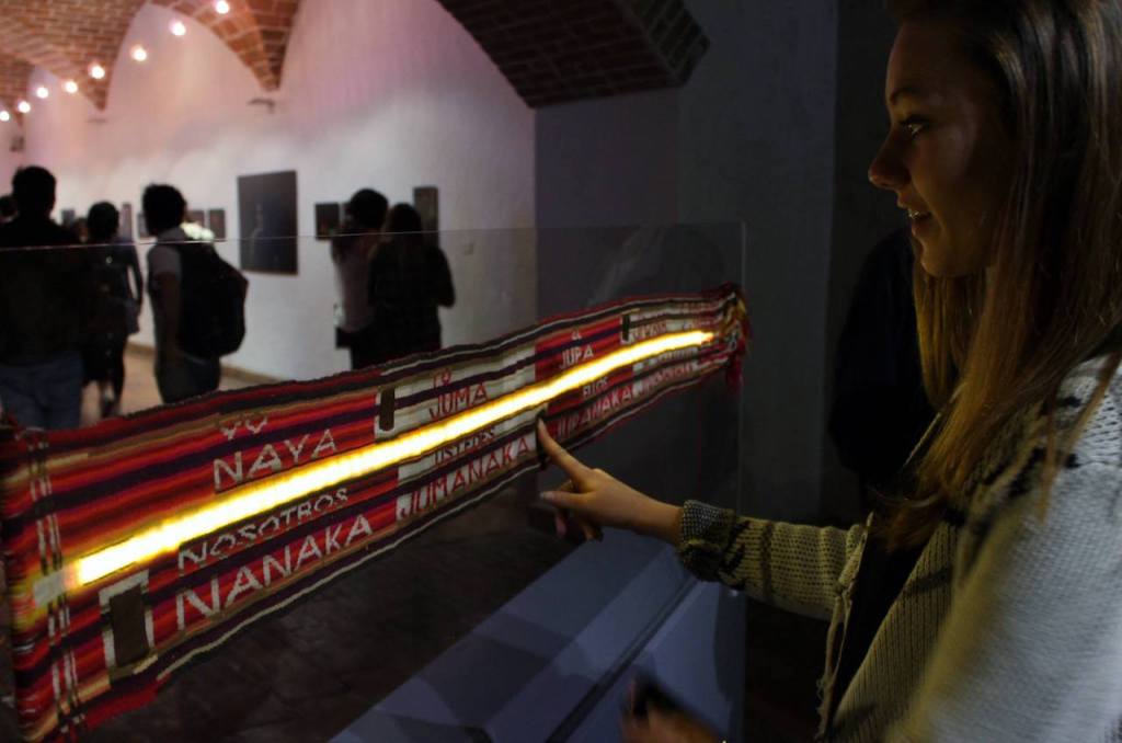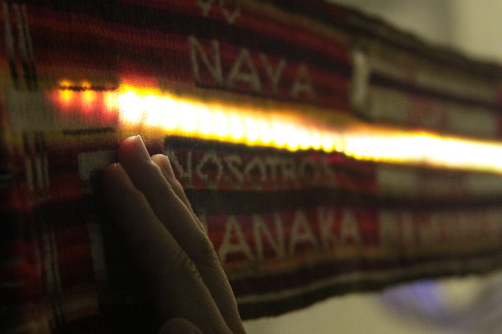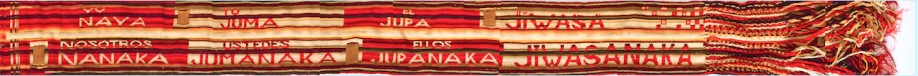 The personal pronouns in Aymara and Spanish were woven, highlighting the fourth Aymara person who does not exist in Spanish: Jiwasanaka
