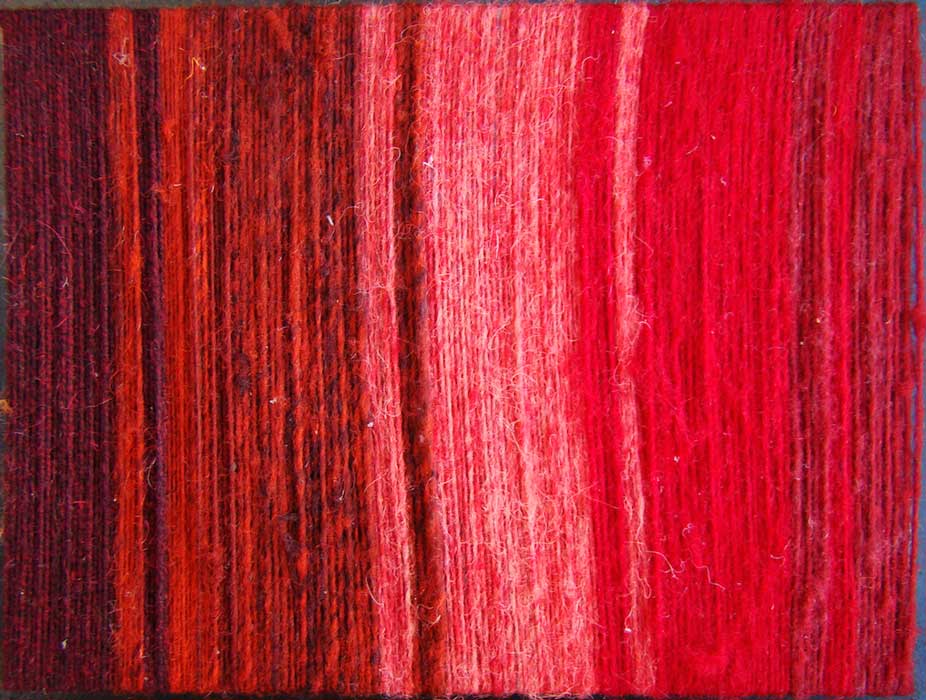 KURMIS Andean Rainbows:: single element weaves Warps with colored fleece hand spun in a single threadDimensions: 25 x 15 cmYear 2013 < CHIRIS :TEXTILE OBJECTS: BINNACLE > ©Sandra De Berduccy, 2025 HOME BIO ARTWORKS PROJECTS PUBLICATIONS EVENTS CONTACT . Like Loading...