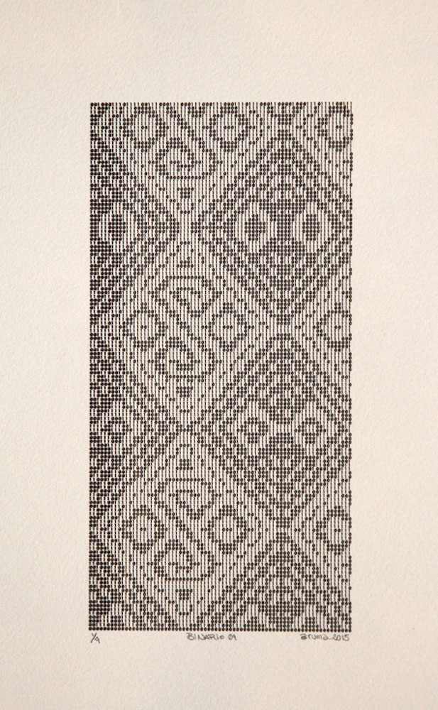 BINARIES One and zero make another one Serial prints on paper Dimensions: 40 x 60 cm Year: 2014 Installations Centex, Valparaiso, Chile 2018 < CURRENCY :WORKS ON PAPER: E-LANDERO > ©Sandra De Berduccy, 2025 HOME BIO ARTWORKS PROJECTS PUBLICATIONS EVENTS CONTACT . Like Loading...