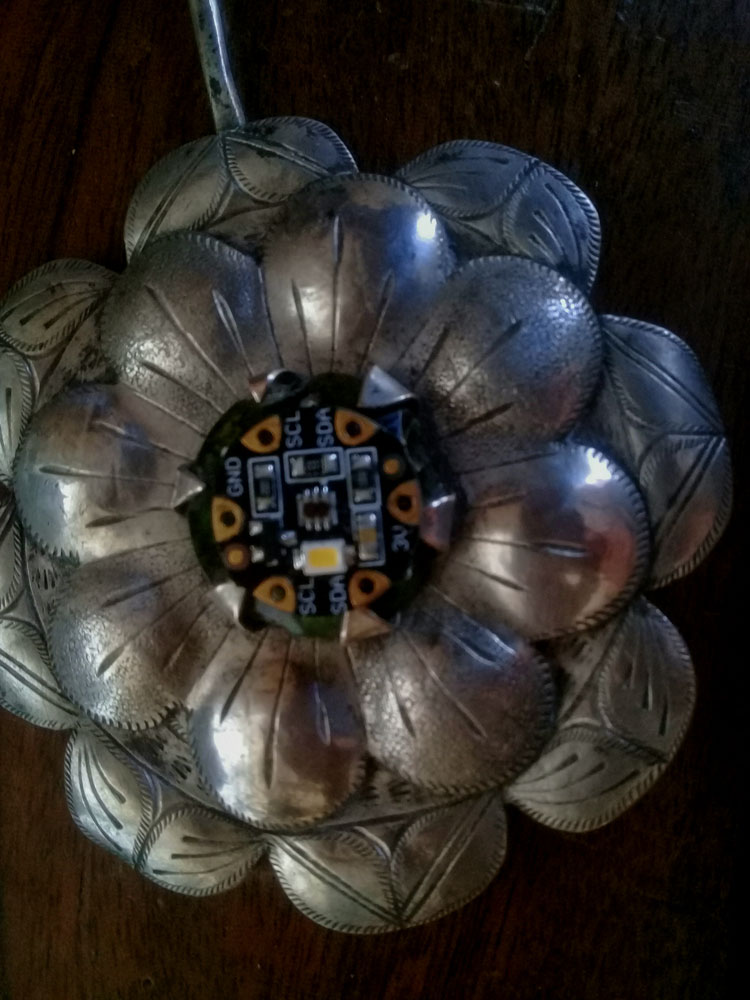 e-topos Interactive jewelry Topo is a jewel that has been used since ancient times to secure blankets and fabrics. These topos include electrical circuits, microcontrollers and invite interaction. < E-WAKAYCHAS :ELECTRIC OBJECTS: PROJECTORS > ©Sandra De Berduccy, 2025 HOME BIO ARTWORKS PROJECTS PUBLICATIONS EVENTS CONTACT . Like Loading...