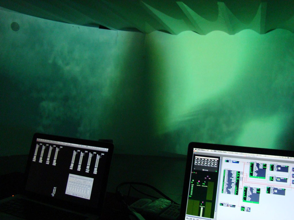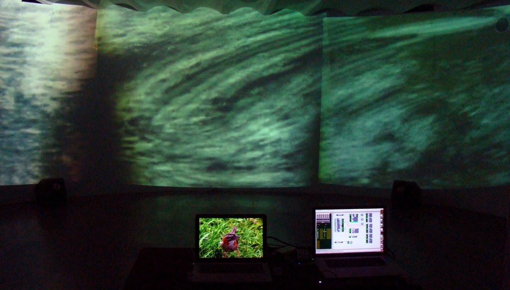 Agua Nocturna tiene como fuente grabaciones audiovisuales en locaciones nocturnas en la Selva Maya de El Petén – Guatemala y de Yucatán – México. Esta obra involucra técnicas y procesos análogos y digitales, a través de un montaje multicanal de audio y video, generando de esta forma un flujo que provocará una experiencia inmersiva.