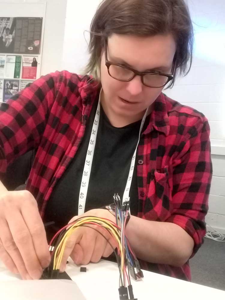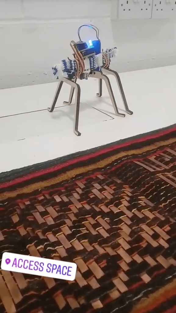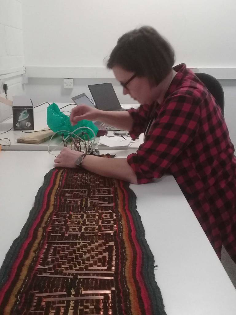 Trabajo de laboratorio en Accsess Space con los artistas Toni Buckby y Alex Maclean, mejorando la sensitividad del tejido sonoro. Para la exposición Patterns of Movement, en el contexto del Festival Algomech – Algorithmic and Mechanical Music+Art