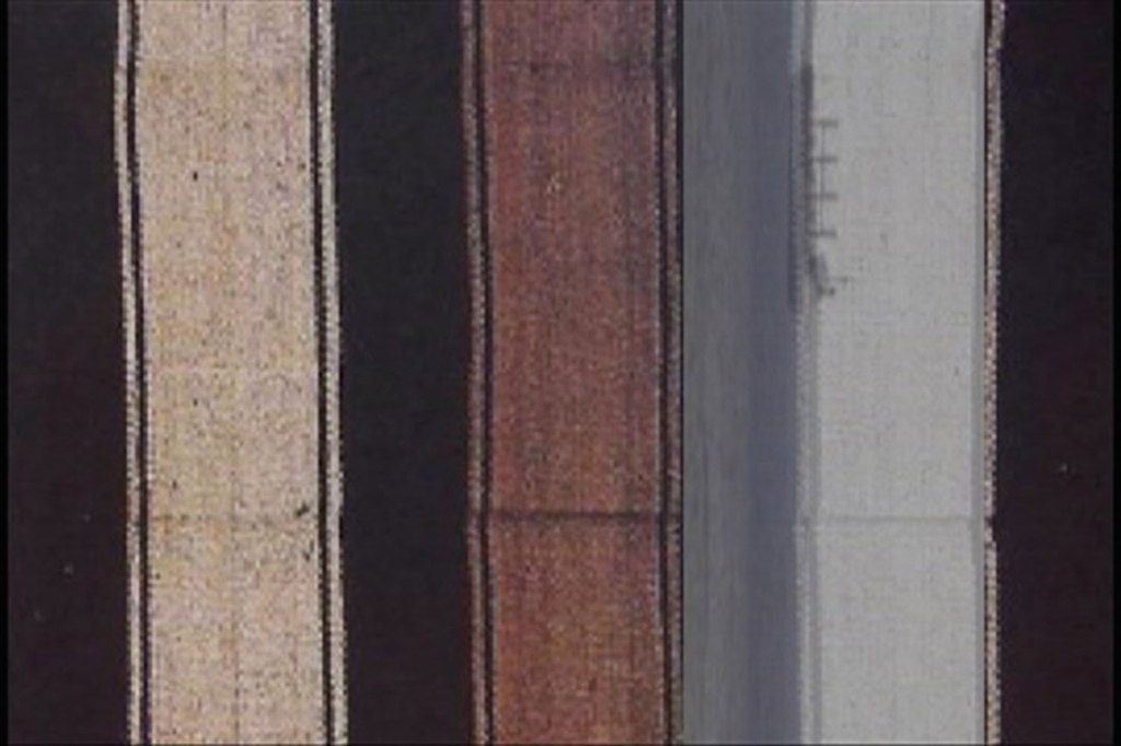 En los límites del mar barcos circulan por horizontes verticales, realidades invertidas y yuxtapuestas, un viaje donde el tiempo se anula y pierde su significación, el espacio se diluye y encuentra paralelo en las líneas verticales de un tejido aymara, utilizado para cargar, almacenar y transportar (talvez la misma función de los barcos). La cadencia del terremoto de Sipe-Sipe, bolero de caballería, que acompañaba a los combatientes bolivianos a la guerra del Chaco y que hoy acompaña entierros en barrios populares, evoca la memoria y convida a pensar en pérdidas, migraciones y saqueos.