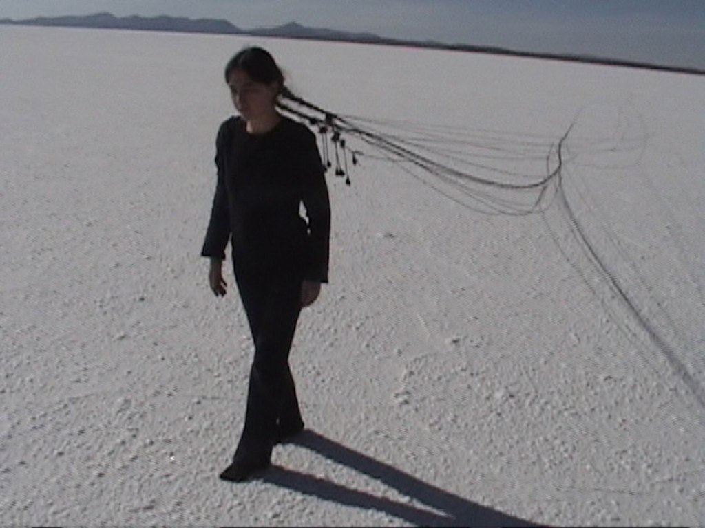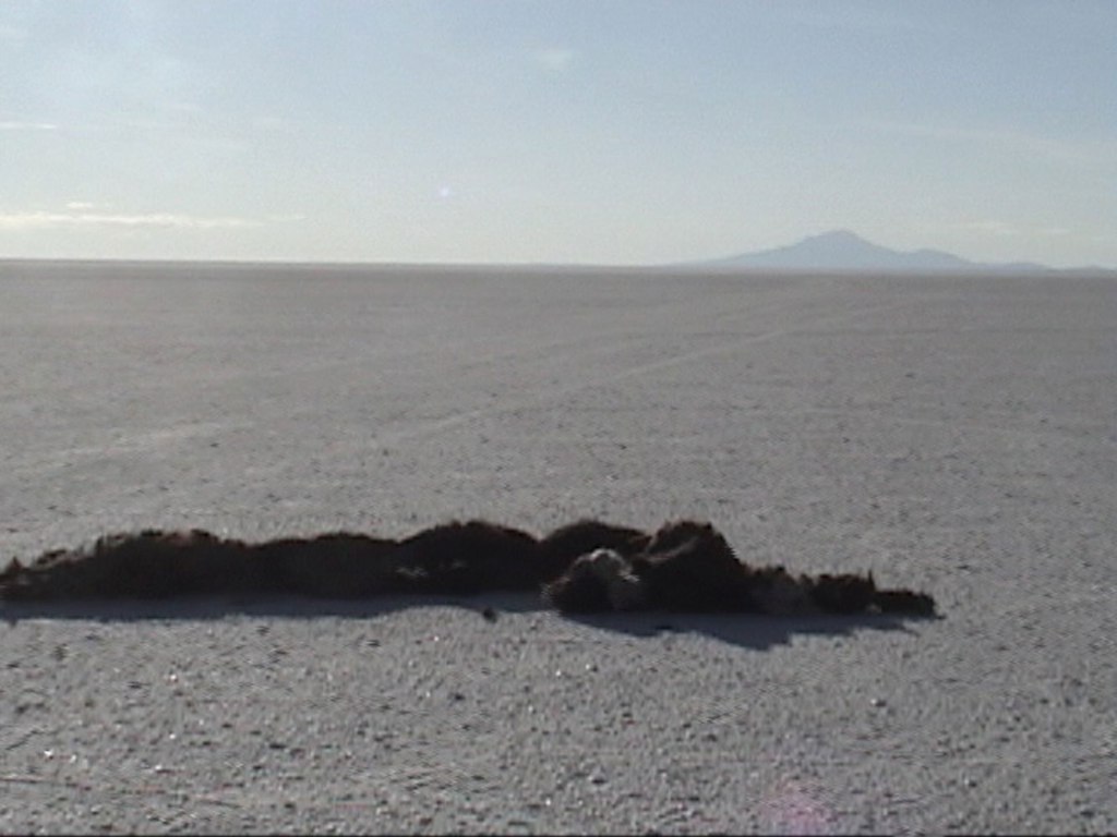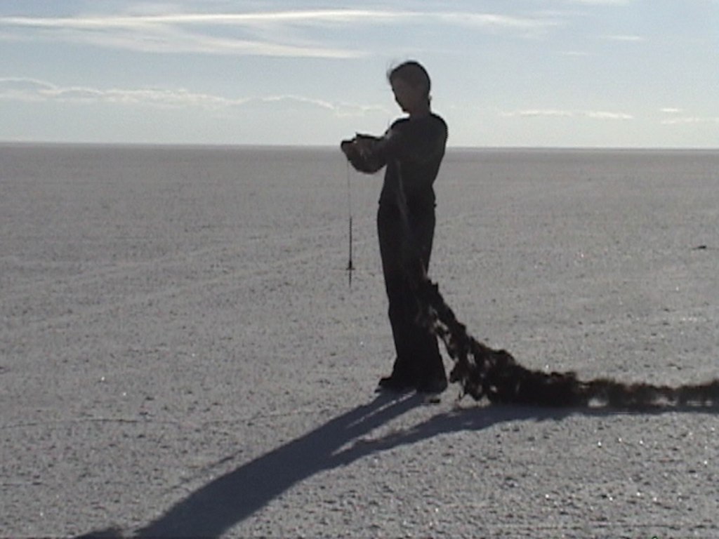 Q’aiturastro, vídeo que registra las imágenes de una performance realizada en el Salar de Uyuni. El vídeo explora una experiencia sensible, propicia también para el encuentro de imágenes simbólicas, paisajes sonoros y la creación musical, con la banda sonora realizada por Bernardo Rozo a partir de la aleatoriedad.