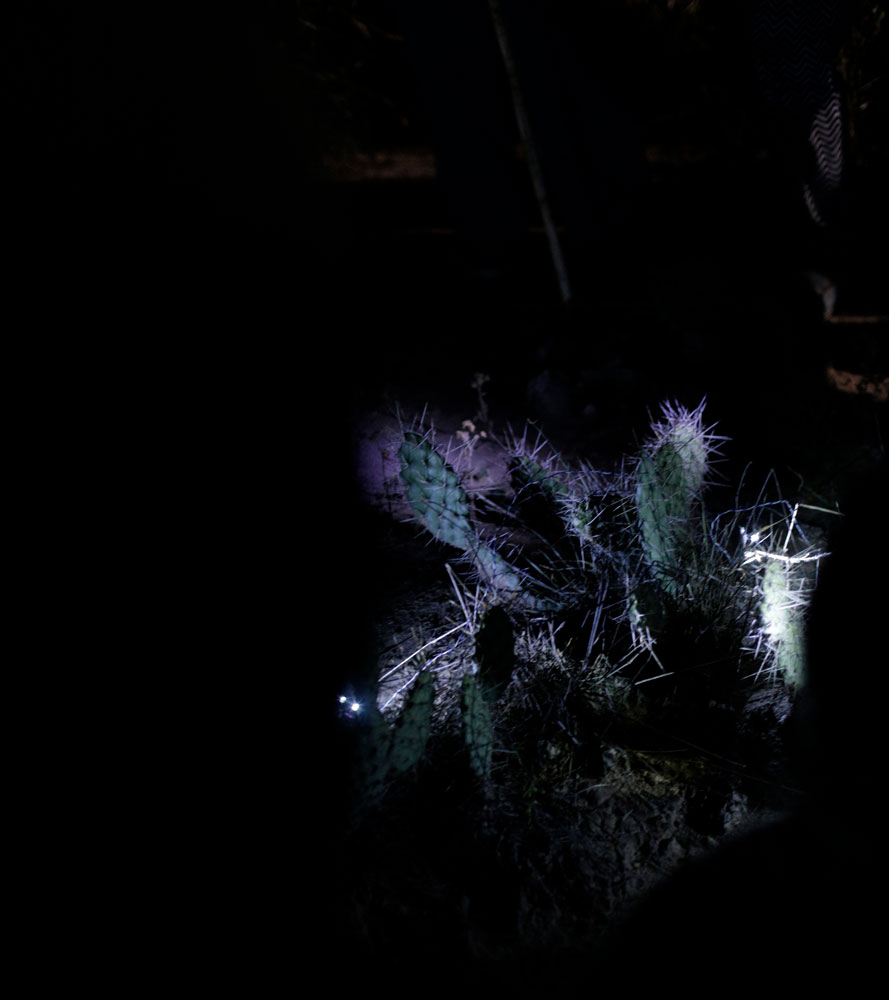 Otro ejemplo es el Airampo (Opuntiae Cochabambiensis), cactus tintóreo endémico del valle de Cochabamba, que sirvió desde épocas ancestrales para teñir fibras en diferentes tonalidades de color violeta. A partir de un ejercicio básico de electrónica se utiliza circuitos eléctricos, conectando los cactus con LEDs, en la oscuridad de la noche, se puede visualizar la energía que contienen.
