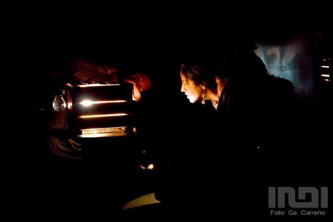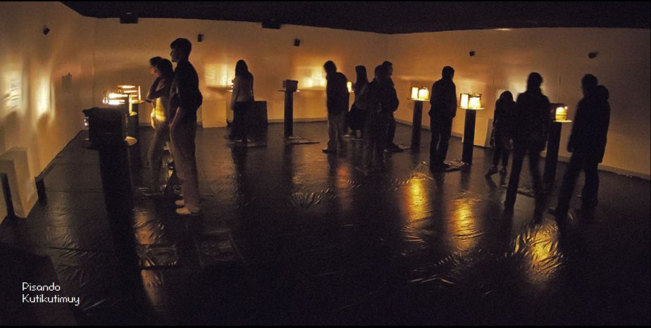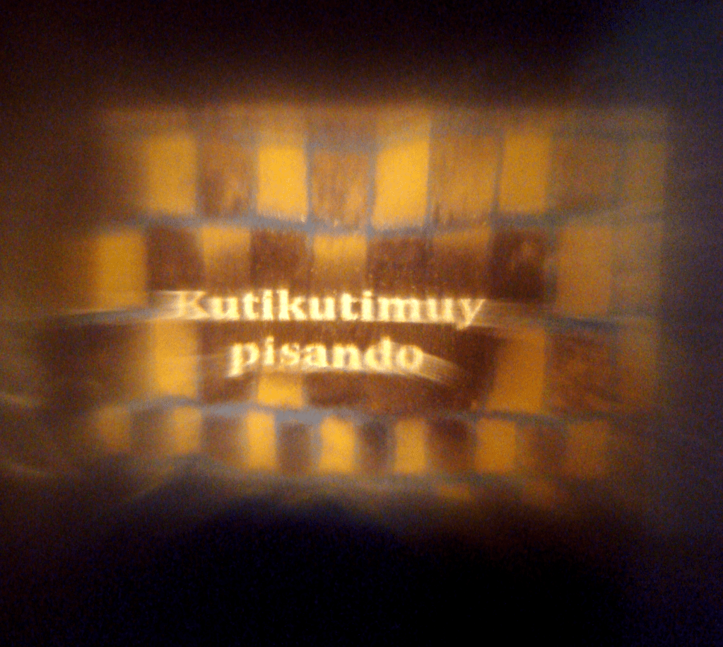 Instalación audiovisual interactiva en la que los espectadores pueden componer su propia experiencia visual y musical, pisando los sensores que tiene cada uno de los 13 proyectores Low tech. Cada imagen proyectada está relacionada a una simbiosis sonora de la misma ecuación ‘texto-textil-código’. Sobre esta base, cuando sean activados varios proyectores a la vez, será posible la construcción aleatoria de un tejido audiovisual mayor, descubriéndose las diferentes posibilidades poéticas de combinación de los materiales audiovisuales presentes.