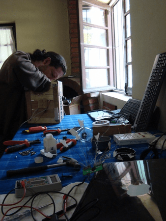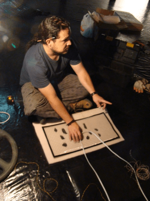A través del uso de sensores de piso se hará posible activar cada uno de los proyectores de manera individual, así como también del material de audio relacionado a cada caso, teniendo en total 12 materiales sonoros distintos. El resultado audiovisual global será activado de manera aleatoria por los visitantes, de manera que éstos tendrán su propia contribución en la manera en que la obra se les presenta. Este conjunto de proyectores podrá ser rodeado por el espectador de manera que pueda descubrir por sí mismo el funcionamiento de la instalación.