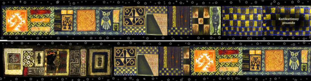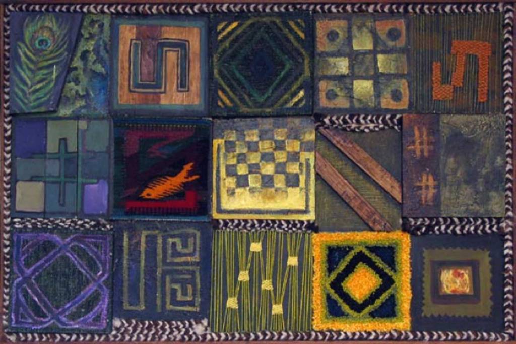 Entre los años 2000 a 2005, realizé un estudio detallado sobre las posibilidades expresivas de los Tocapus, utilizando medios mixtos, tejido pintura, collage, entre otros y sobretodo, estudiándolos como textos susceptibles a ser leídos.
