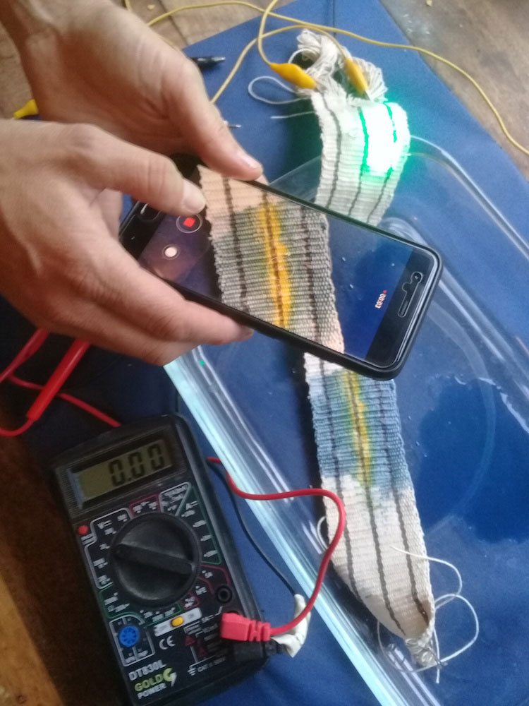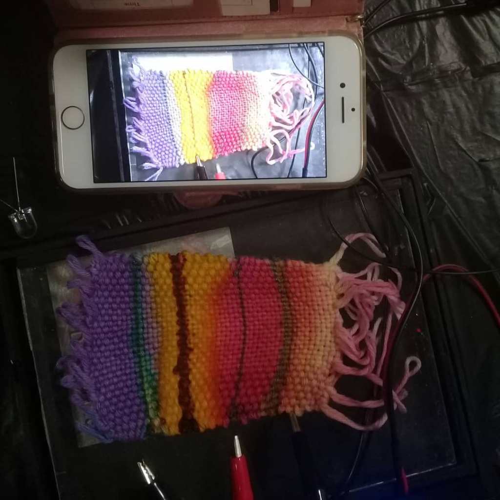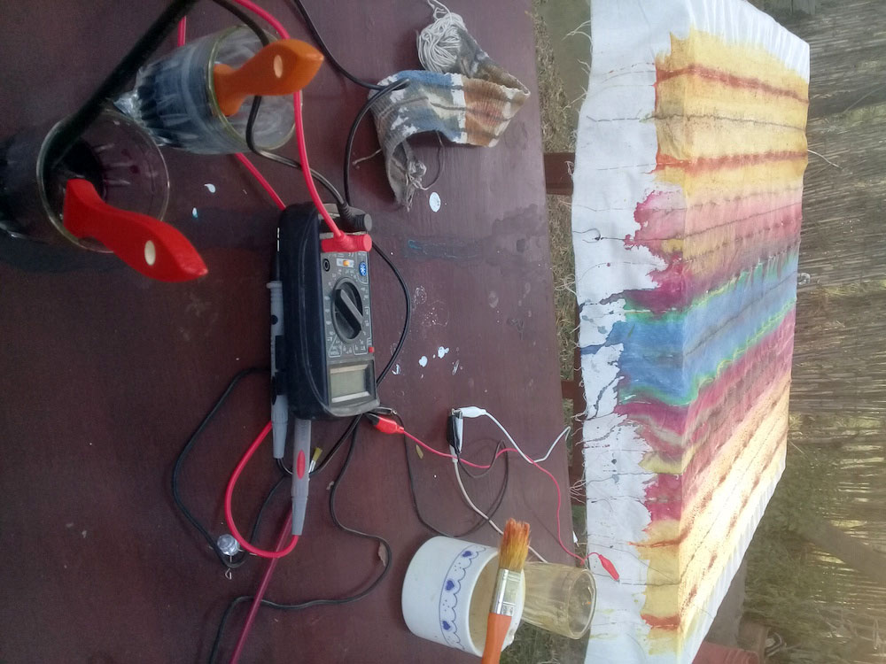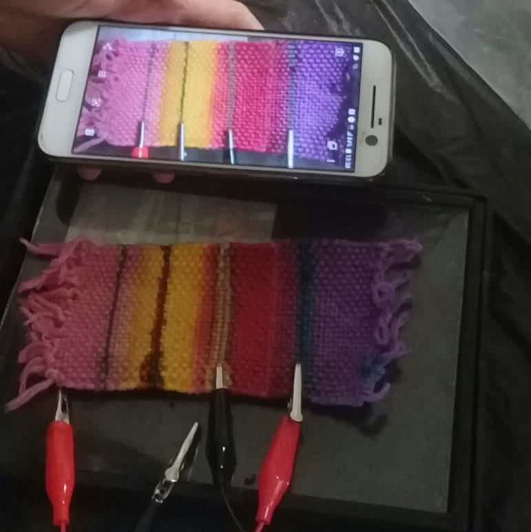 Cuando tintes tradicionalmente utilizados para los tejidos andinos, son aplicados en una superficie textil, y son afectados por impulsos eléctricos controlados, se genera un tipo de cromatografía, donde se revela el espectro cromático que los compone. Cada tinte reaccionará de manera diferente al mismo impulso., generando las degradaciones tonales que caracterizan a los tejidos andinos, conocidas como “k`isa” o ” paciña“.